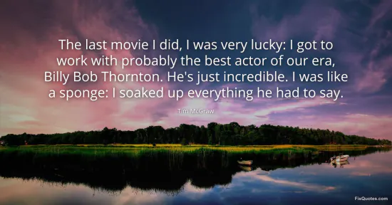 McGraw, Tim. "The last movie I did, I was very lucky: I got to work with probably the best actor of our era, Billy Bob Thornton. He's just incredible. I was like a sponge: I soaked up everything he had to say." FixQuotes. January 15, 2026. https://fixquotes.com/quotes/the-last-movie-i-did-i-was-very-lucky-i-got-to-165915/.