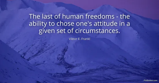 "The last of human freedoms - the ability to chose one's attitude in a given set of circumstances." FixQuotes, 18 Jan. 2026, https://fixquotes.com/quotes/the-last-of-human-freedoms-the-ability-to-chose-14987/. Accessed 12 Feb. 2026.