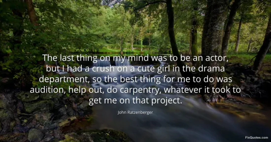 Ratzenberger, John. "The last thing on my mind was to be an actor, but I had a crush on a cute girl in the drama department, so the best thing for me to do was audition, help out, do carpentry, whatever it took to get me on that project." FixQuotes. January 17, 2026. https://fixquotes.com/quotes/the-last-thing-on-my-mind-was-to-be-an-actor-but-57372/.