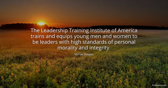Burgess, Michael. (2026, January 17). The Leadership Training Institute of America trains and equips young men and women to be leaders with high standards of personal morality and integrity. FixQuotes. https://fixquotes.com/quotes/the-leadership-training-institute-of-america-72783/