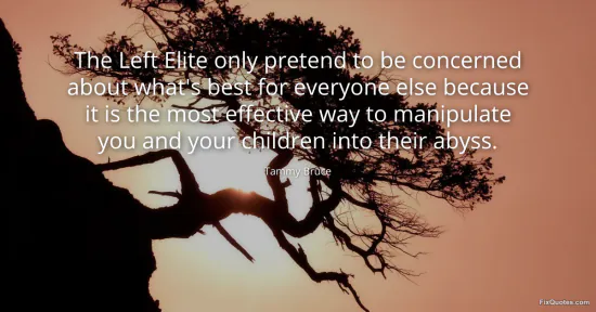 Bruce, Tammy. (2026, January 16). The Left Elite only pretend to be concerned about what's best for everyone else because it is the most effective way to manipulate you and your children into their abyss. FixQuotes. https://fixquotes.com/quotes/the-left-elite-only-pretend-to-be-concerned-about-120923/