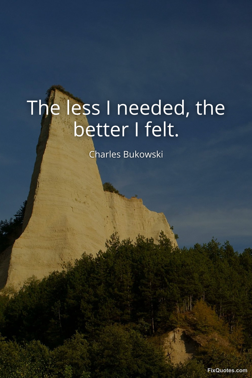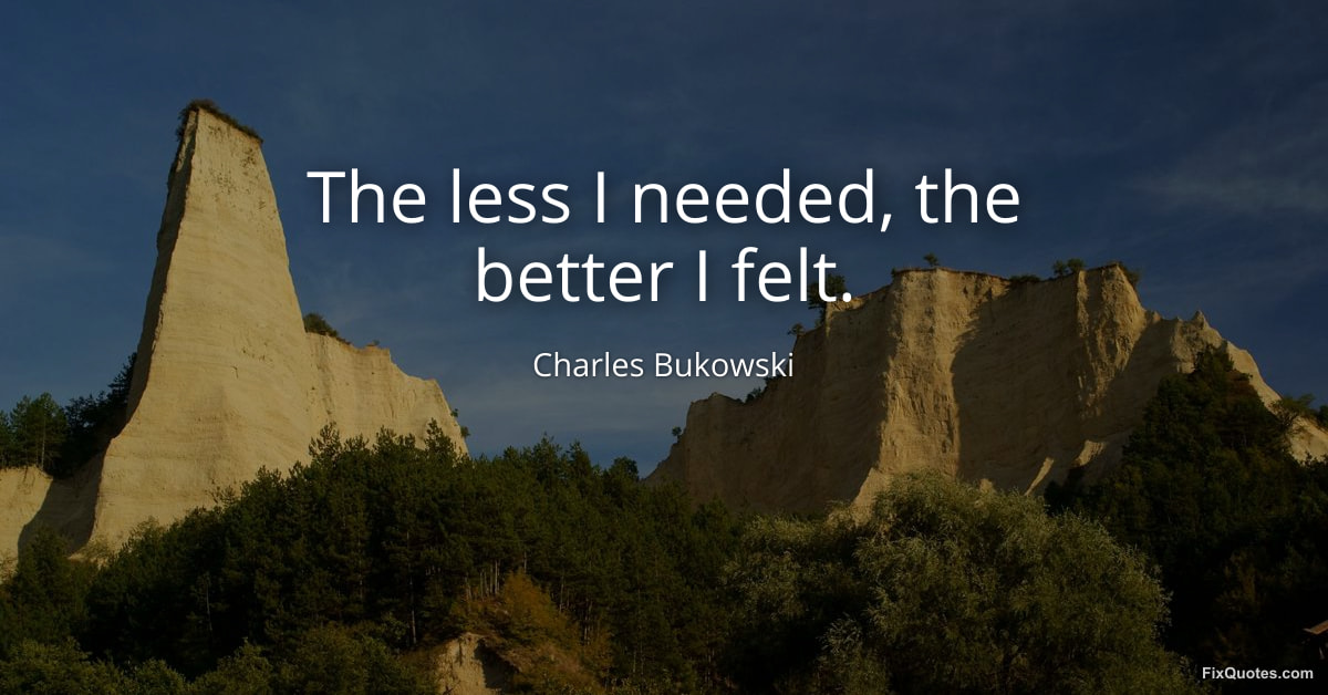 Bukowski, Charles. "The less I needed, the better I felt." FixQuotes. February 10, 2026. https://fixquotes.com/quotes/the-less-i-needed-the-better-i-felt-185139/.