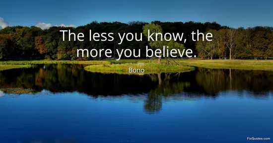 Bono. (2026, February 10). The less you know, the more you believe. FixQuotes. https://fixquotes.com/quotes/the-less-you-know-the-more-you-believe-101232/