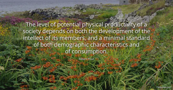Trout, Robert. "The level of potential physical productivity of a society depends on both the development of the intellect of its members, and a minimal standard of both demographic characteristics and of consumption." FixQuotes. January 16, 2026. https://fixquotes.com/quotes/the-level-of-potential-physical-productivity-of-a-94403/.