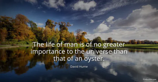 Hume, David. (2026, January 15). The life of man is of no greater importance to the universe than that of an oyster. FixQuotes. https://fixquotes.com/quotes/the-life-of-man-is-of-no-greater-importance-to-86690/