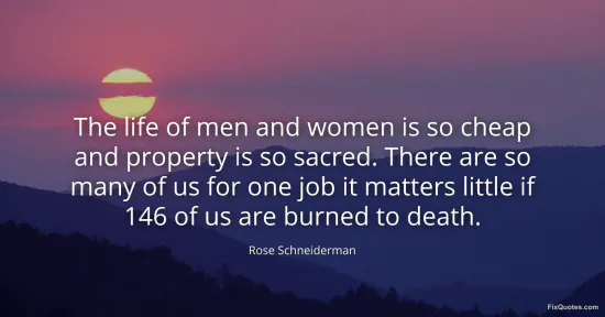 Schneiderman, Rose. (2026, January 16). The life of men and women is so cheap and property is so sacred. There are so many of us for one job it matters little if 146 of us are burned to death. FixQuotes. https://fixquotes.com/quotes/the-life-of-men-and-women-is-so-cheap-and-85936/