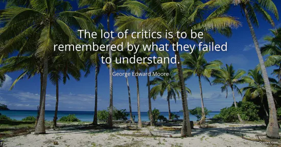 Moore, George Edward. "The lot of critics is to be remembered by what they failed to understand." FixQuotes. January 17, 2026. https://fixquotes.com/quotes/the-lot-of-critics-is-to-be-remembered-by-what-54034/.