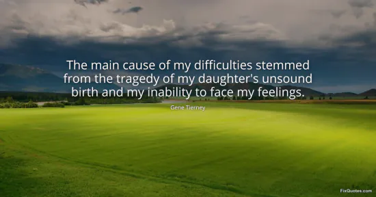 Tierney, Gene. "The main cause of my difficulties stemmed from the tragedy of my daughter's unsound birth and my inability to face my feelings." FixQuotes. January 17, 2026. https://fixquotes.com/quotes/the-main-cause-of-my-difficulties-stemmed-from-53635/.