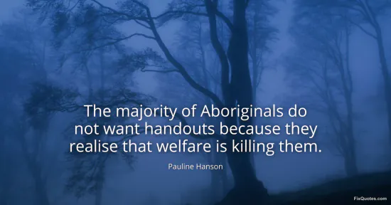 Hanson, Pauline. "The majority of Aboriginals do not want handouts because they realise that welfare is killing them." FixQuotes. January 16, 2026. https://fixquotes.com/quotes/the-majority-of-aboriginals-do-not-want-handouts-84510/.
