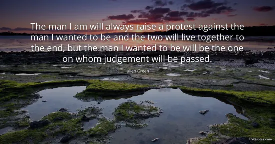 Green, Julien. (2026, January 16). The man I am will always raise a protest against the man I wanted to be and the two will live together to the end, but the man I wanted to be will be the one on whom judgement will be passed. FixQuotes. https://fixquotes.com/quotes/the-man-i-am-will-always-raise-a-protest-against-120285/