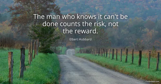 Hubbard, Elbert. "The man who knows it can't be done counts the risk, not the reward." FixQuotes. January 15, 2026. https://fixquotes.com/quotes/the-man-who-knows-it-cant-be-done-counts-the-risk-35951/.
