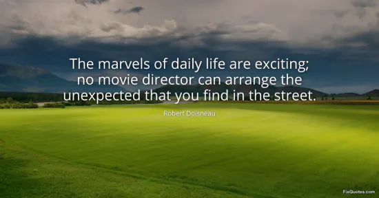 Doisneau, Robert. "The marvels of daily life are exciting; no movie director can arrange the unexpected that you find in the street." FixQuotes. January 15, 2026. https://fixquotes.com/quotes/the-marvels-of-daily-life-are-exciting-no-movie-162286/.