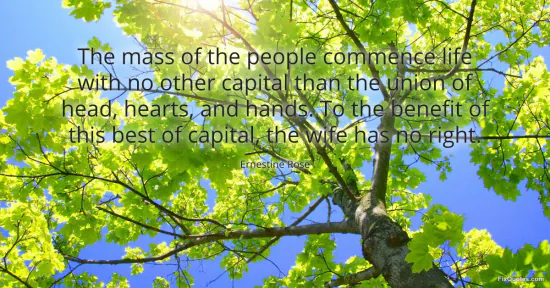 Rose, Ernestine. (2026, February 19). The mass of the people commence life with no other capital than the union of head, hearts, and hands. To the benefit of this best of capital, the wife has no right. FixQuotes. https://fixquotes.com/quotes/the-mass-of-the-people-commence-life-with-no-56682/