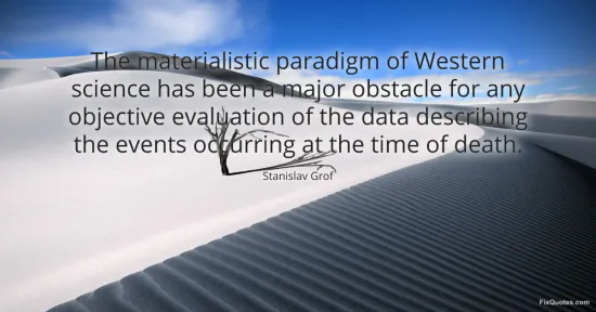 Grof, Stanislav. "The materialistic paradigm of Western science has been a major obstacle for any objective evaluation of the data describing the events occurring at the time of death." FixQuotes. January 16, 2026. https://fixquotes.com/quotes/the-materialistic-paradigm-of-western-science-has-92087/.