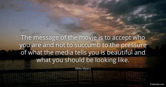 Myers, Mike. "The message of the movie is to accept who you are and not to succumb to the pressure of what the media tells you is beautiful and what you should be looking like." FixQuotes. January 18, 2026. https://fixquotes.com/quotes/the-message-of-the-movie-is-to-accept-who-you-are-12915/.