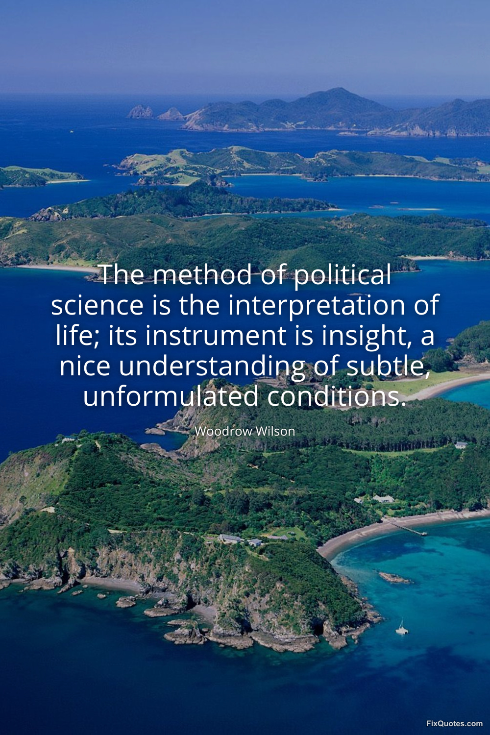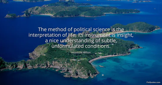 Wilson, Woodrow. "The method of political science is the interpretation of life; its instrument is insight, a nice understanding of subtle, unformulated conditions." FixQuotes. February 21, 2026. https://fixquotes.com/quotes/the-method-of-political-science-is-the-34201/.