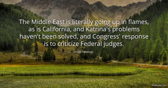 Hastings, Alcee. "The Middle East is literally going up in flames, as is California, and Katrina's problems haven't been solved, and Congress' response is to criticize Federal judges." FixQuotes. January 15, 2026. https://fixquotes.com/quotes/the-middle-east-is-literally-going-up-in-flames-157659/.