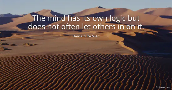 Voto, Bernard De. (2026, January 16). The mind has its own logic but does not often let others in on it. FixQuotes. https://fixquotes.com/quotes/the-mind-has-its-own-logic-but-does-not-often-let-136155/