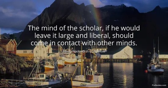 Longfellow, Henry Wadsworth. "The mind of the scholar, if he would leave it large and liberal, should come in contact with other minds." FixQuotes. January 18, 2026. https://fixquotes.com/quotes/the-mind-of-the-scholar-if-he-would-leave-it-19978/.