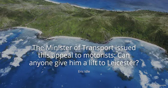 Idle, Eric. "The Minister of Transport issued this appeal to motorists: Can anyone give him a lift to Leicester?" FixQuotes. January 18, 2026. https://fixquotes.com/quotes/the-minister-of-transport-issued-this-appeal-to-4888/.