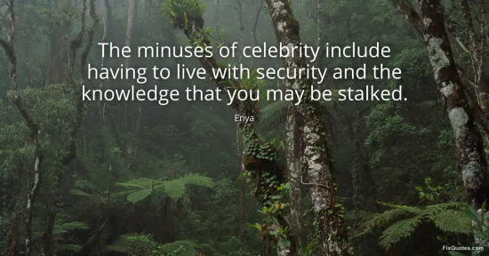 Enya. "The minuses of celebrity include having to live with security and the knowledge that you may be stalked." FixQuotes. January 15, 2026. https://fixquotes.com/quotes/the-minuses-of-celebrity-include-having-to-live-143799/.