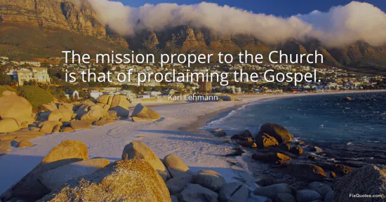 Lehmann, Karl. "The mission proper to the Church is that of proclaiming the Gospel." FixQuotes. January 17, 2026. https://fixquotes.com/quotes/the-mission-proper-to-the-church-is-that-of-80787/.