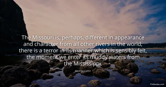 Catlin, George. "The Missouri is, perhaps, different in appearance and character from all other rivers in the world; there is a terror in its manner which is sensibly felt, the moment we enter its muddy waters from the Mississippi." FixQuotes. January 15, 2026. https://fixquotes.com/quotes/the-missouri-is-perhaps-different-in-appearance-140918/.