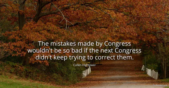 Hightower, Cullen. (2026, January 17). The mistakes made by Congress wouldn't be so bad if the next Congress didn't keep trying to correct them. FixQuotes. https://fixquotes.com/quotes/the-mistakes-made-by-congress-wouldnt-be-so-bad-77742/