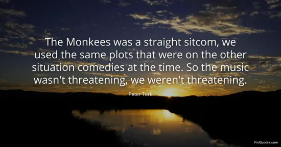 Tork, Peter. "The Monkees was a straight sitcom, we used the same plots that were on the other situation comedies at the time. So the music wasn't threatening, we weren't threatening." FixQuotes. January 15, 2026. https://fixquotes.com/quotes/the-monkees-was-a-straight-sitcom-we-used-the-153140/.