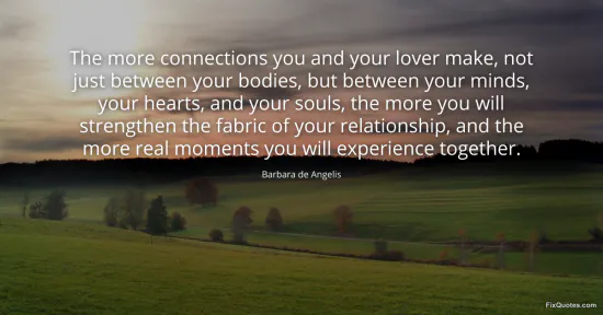 Angelis, Barbara de. (2026, January 16). The more connections you and your lover make, not just between your bodies, but between your minds, your hearts, and your souls, the more you will strengthen the fabric of your relationship, and the more real moments you will experience together. FixQuotes. https://fixquotes.com/quotes/the-more-connections-you-and-your-lover-make-not-120010/