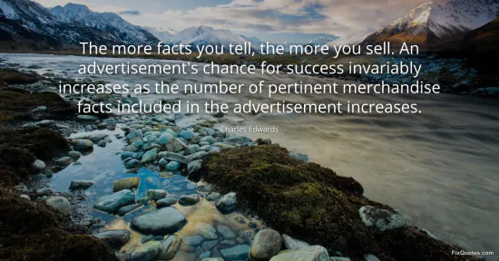 Edwards, Charles. "The more facts you tell, the more you sell. An advertisement's chance for success invariably increases as the number of pertinent merchandise facts included in the advertisement increases." FixQuotes. January 17, 2026. https://fixquotes.com/quotes/the-more-facts-you-tell-the-more-you-sell-an-44599/.