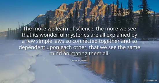 Brown, Olympia. (2026, January 16). The more we learn of science, the more we see that its wonderful mysteries are all explained by a few simple laws so connected together and so dependent upon each other, that we see the same mind animating them all. FixQuotes. https://fixquotes.com/quotes/the-more-we-learn-of-science-the-more-we-see-that-120629/