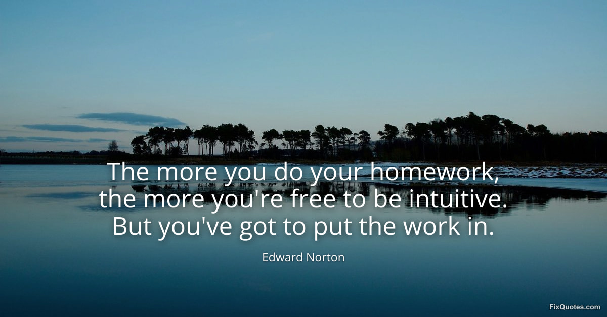 Norton, Edward. (2026, January 25). The more you do your homework, the more you're free to be intuitive. But you've got to put the work in. FixQuotes. https://fixquotes.com/quotes/the-more-you-do-your-homework-the-more-youre-free-184318/