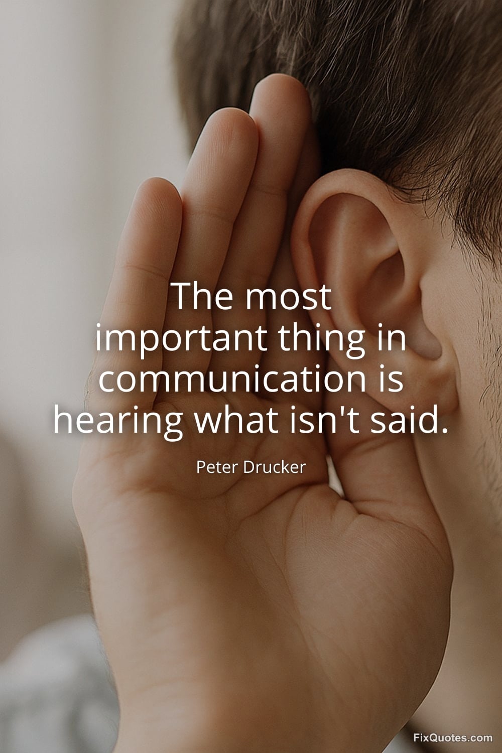 Communication, Drucker reminds you, is less a transaction than an act of attention. The line lands because it flips the usual hierarchy: we obsess over clarity, persuasion, the perfectly worded email, while the real signal often lives in the silence around it. “Hearing what isn’t said” is Drucker’s business-minded way of describing a human truth managers routinely ignore: people protect themselves. They soften bad news, launder conflict into polite phrasing, and bury dissent under “sounds good.” If you only take the spoken message at face value, you’re not being efficient; you’re being naive.