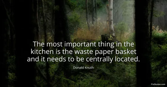 Knuth, Donald. "The most important thing in the kitchen is the waste paper basket and it needs to be centrally located." FixQuotes. January 16, 2026. https://fixquotes.com/quotes/the-most-important-thing-in-the-kitchen-is-the-104367/.