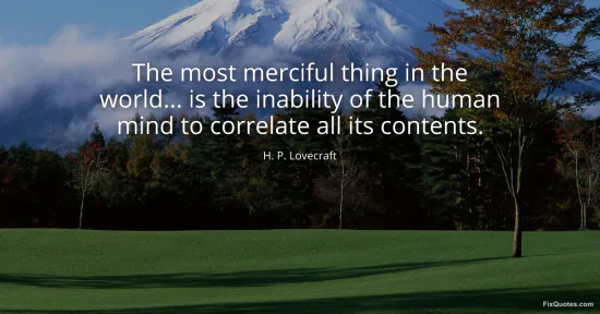 Lovecraft, H. P. "The most merciful thing in the world... is the inability of the human mind to correlate all its contents." FixQuotes. January 15, 2026. https://fixquotes.com/quotes/the-most-merciful-thing-in-the-world-is-the-146351/.
