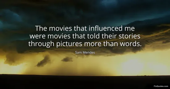 Mendes, Sam. (2026, January 17). The movies that influenced me were movies that told their stories through pictures more than words. FixQuotes. https://fixquotes.com/quotes/the-movies-that-influenced-me-were-movies-that-24670/