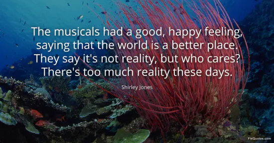Jones, Shirley. "The musicals had a good, happy feeling, saying that the world is a better place. They say it's not reality, but who cares? There's too much reality these days." FixQuotes. January 15, 2026. https://fixquotes.com/quotes/the-musicals-had-a-good-happy-feeling-saying-that-169118/.