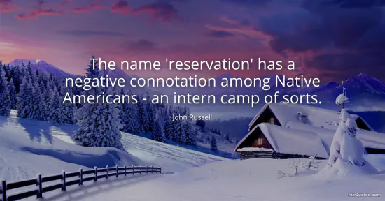 Russell, John. "The name 'reservation' has a negative connotation among Native Americans - an intern camp of sorts." FixQuotes. January 15, 2026. https://fixquotes.com/quotes/the-name-reservation-has-a-negative-connotation-151835/.