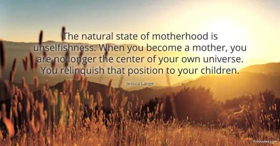 Lange, Jessica. (2026, January 15). The natural state of motherhood is unselfishness. When you become a mother, you are no longer the center of your own universe. You relinquish that position to your children. FixQuotes. https://fixquotes.com/quotes/the-natural-state-of-motherhood-is-unselfishness-163469/