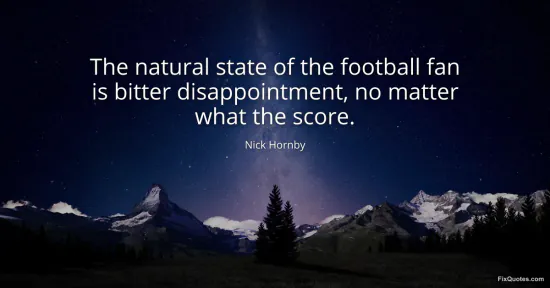 Hornby, Nick. (2026, January 15). The natural state of the football fan is bitter disappointment, no matter what the score. FixQuotes. https://fixquotes.com/quotes/the-natural-state-of-the-football-fan-is-bitter-58571/