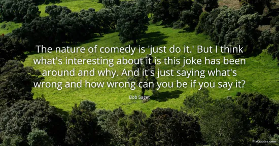 Saget, Bob. (2026, February 19). The nature of comedy is 'just do it.' But I think what's interesting about it is this joke has been around and why. And it's just saying what's wrong and how wrong can you be if you say it? FixQuotes. https://fixquotes.com/quotes/the-nature-of-comedy-is-just-do-it-but-i-think-48369/