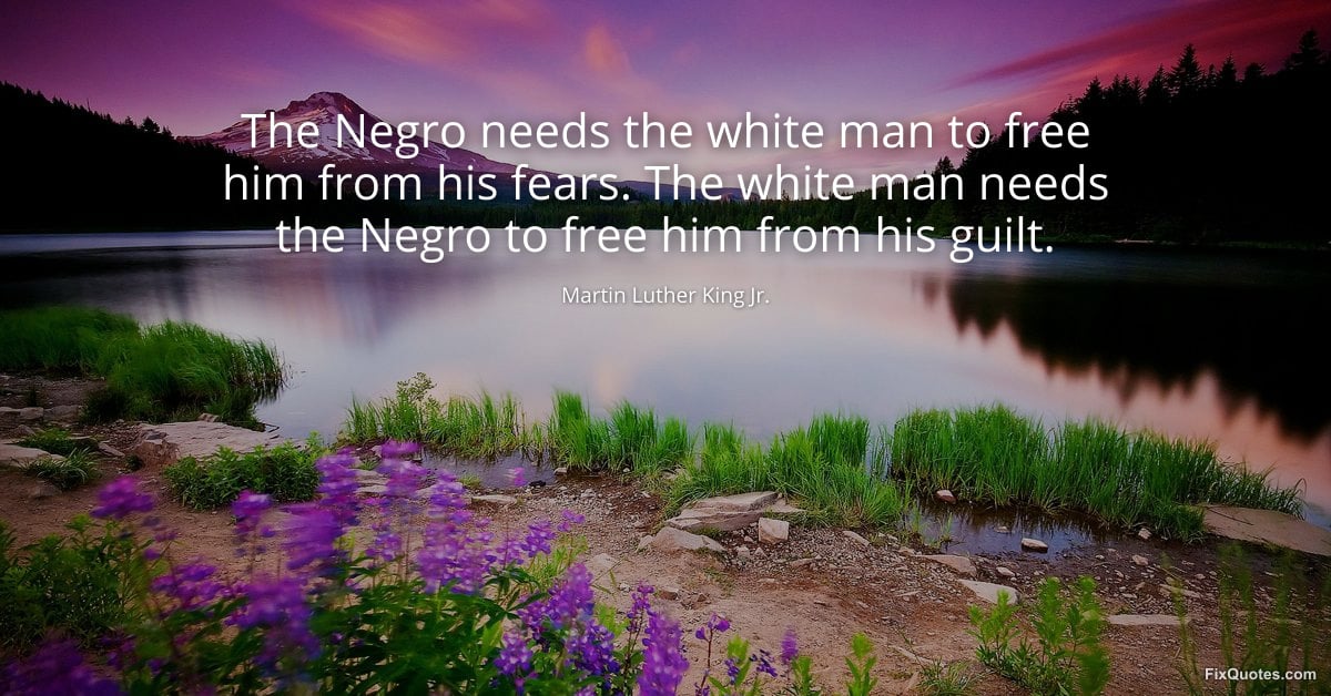 Jr., Martin Luther King. "The Negro needs the white man to free him from his fears. The white man needs the Negro to free him from his guilt." FixQuotes. January 17, 2026. https://fixquotes.com/quotes/the-negro-needs-the-white-man-to-free-him-from-34195/.
