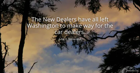 Stevenson, Adlai E. "The New Dealers have all left Washington to make way for the car dealers." FixQuotes. January 15, 2026. https://fixquotes.com/quotes/the-new-dealers-have-all-left-washington-to-make-45931/.