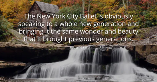 Caro, Robert. "The New York City Ballet is obviously speaking to a whole new generation and bringing it the same wonder and beauty that it brought previous generations." FixQuotes. January 17, 2026. https://fixquotes.com/quotes/the-new-york-city-ballet-is-obviously-speaking-to-62901/.