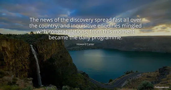 Carter, Howard. "The news of the discovery spread fast all over the country, and inquisitive enquiries mingled with congratulations, from this moment became the daily programme." FixQuotes. February 19, 2026. https://fixquotes.com/quotes/the-news-of-the-discovery-spread-fast-all-over-48268/.