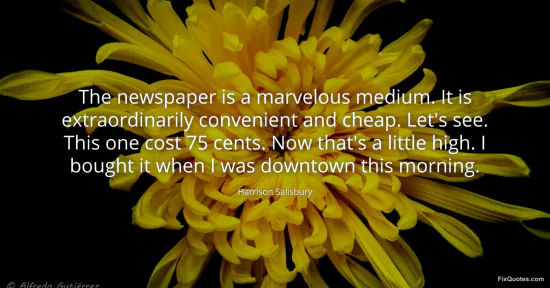 "The newspaper is a marvelous medium. It is extraordinarily convenient and cheap. Let's see. This one cost 75 cents. Now that's a little high. I bought it when I was downtown this morning"