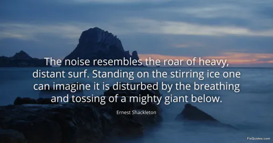 Shackleton, Ernest. "The noise resembles the roar of heavy, distant surf. Standing on the stirring ice one can imagine it is disturbed by the breathing and tossing of a mighty giant below." FixQuotes. January 16, 2026. https://fixquotes.com/quotes/the-noise-resembles-the-roar-of-heavy-distant-117448/.