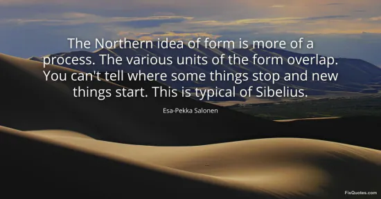 Salonen, Esa-Pekka. (2026, January 17). The Northern idea of form is more of a process. The various units of the form overlap. You can't tell where some things stop and new things start. This is typical of Sibelius. FixQuotes. https://fixquotes.com/quotes/the-northern-idea-of-form-is-more-of-a-process-53033/