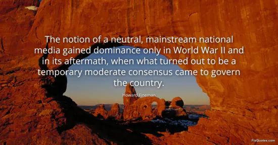 Fineman, Howard. (2026, January 15). The notion of a neutral, mainstream national media gained dominance only in World War II and in its aftermath, when what turned out to be a temporary moderate consensus came to govern the country. FixQuotes. https://fixquotes.com/quotes/the-notion-of-a-neutral-mainstream-national-media-148557/